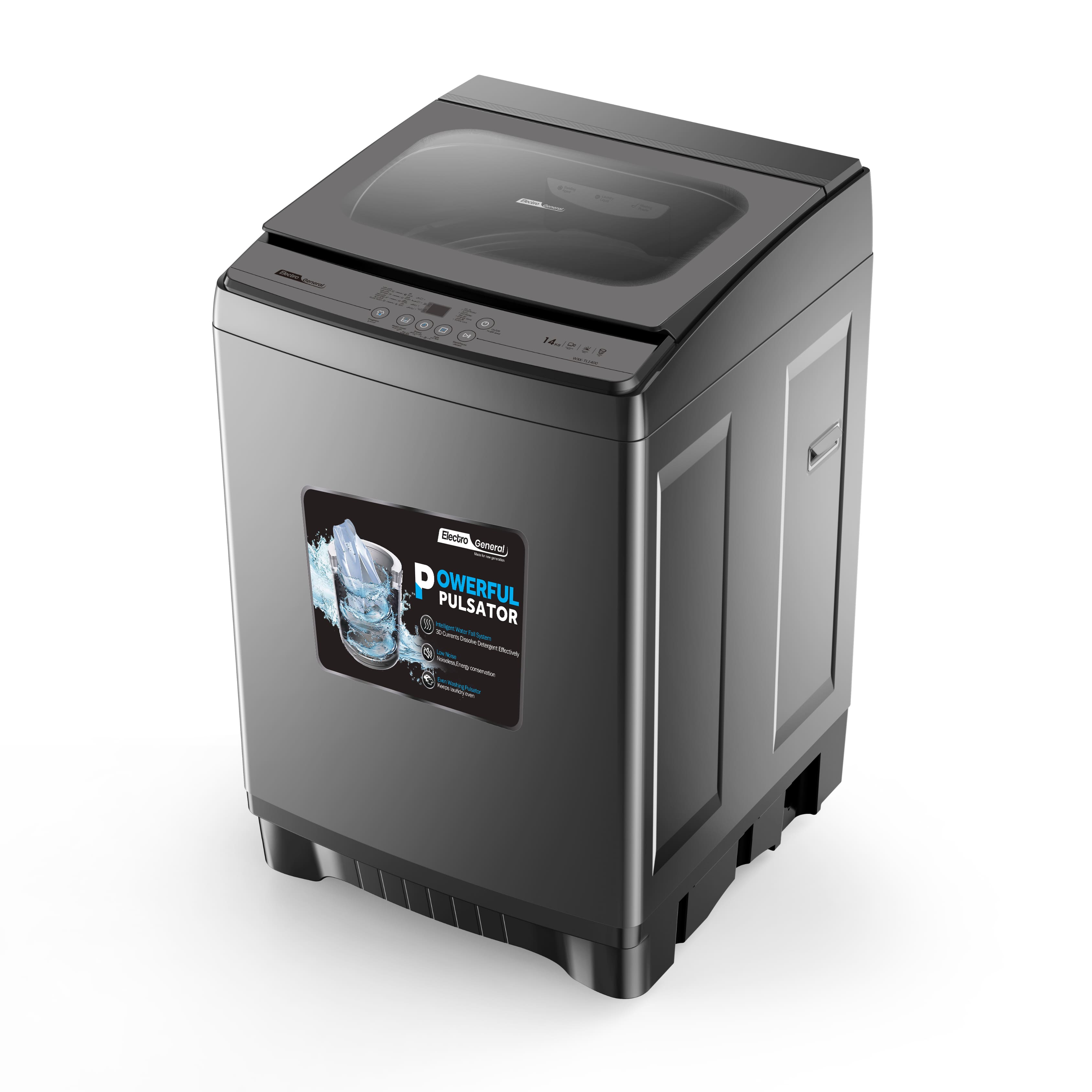 Electro General Fully Automatic Top Loading Washing Machine WXK-TL1400, 14KG Capacity, Tempered Glass Lid, Powerful Pulsator, Dual Water Inlets, Fuzzy Logic Washing System, 8 Programs, 24-Hour Pre-set Timer