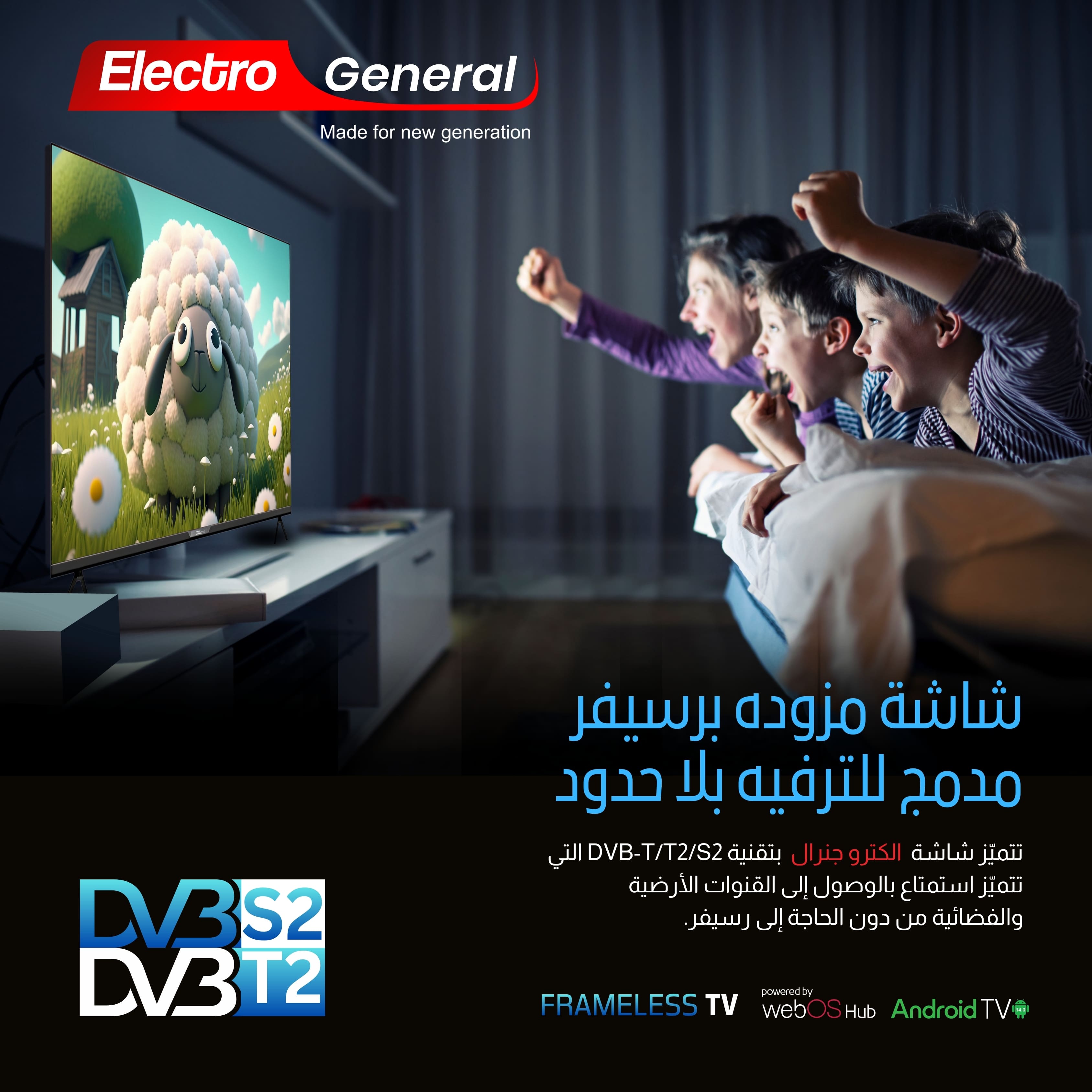Electro General 50-Inch 4K UHD Android-15 LED Smart TV, DVB-T/T2/S2, Frameless Design, YouTube, Netflix, Shahid.