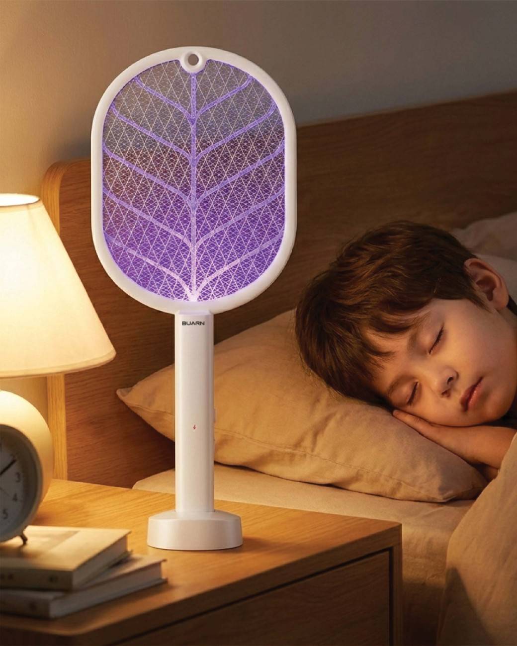 BUARN Electric Mosquito Swatter IC-MT11, Rechargeable Bug Zapper Racket with Stand, 3000V High Power, 500mAh Lithium Battery, LED UV Light, USB 5V Charging