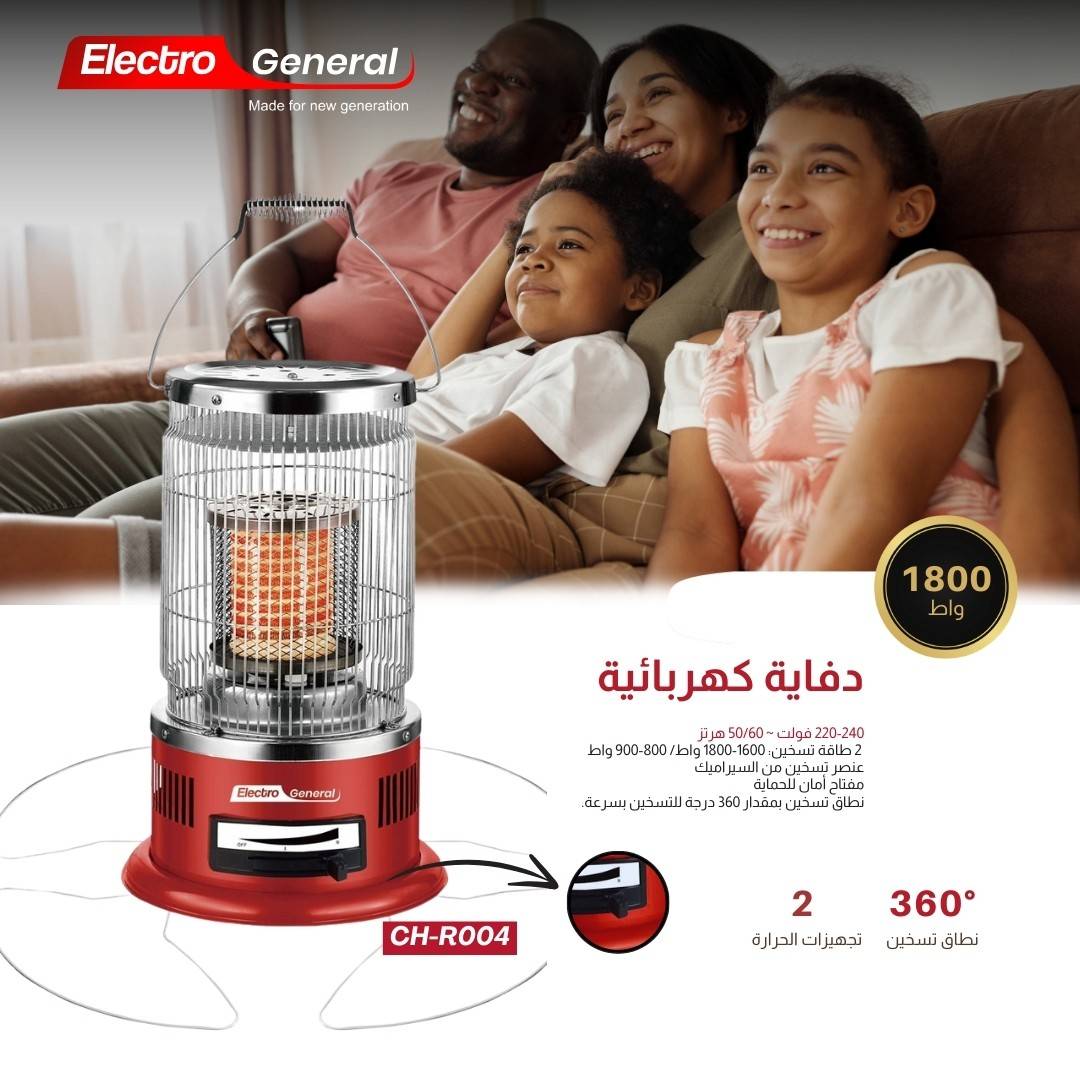Electro General Electric Heater CH-R004, 1600-1800W, 360° Heating Range, Circular Design, 2 Power Settings (900W/1800W), Ceramic Heating Elements, Tip-Over Protection