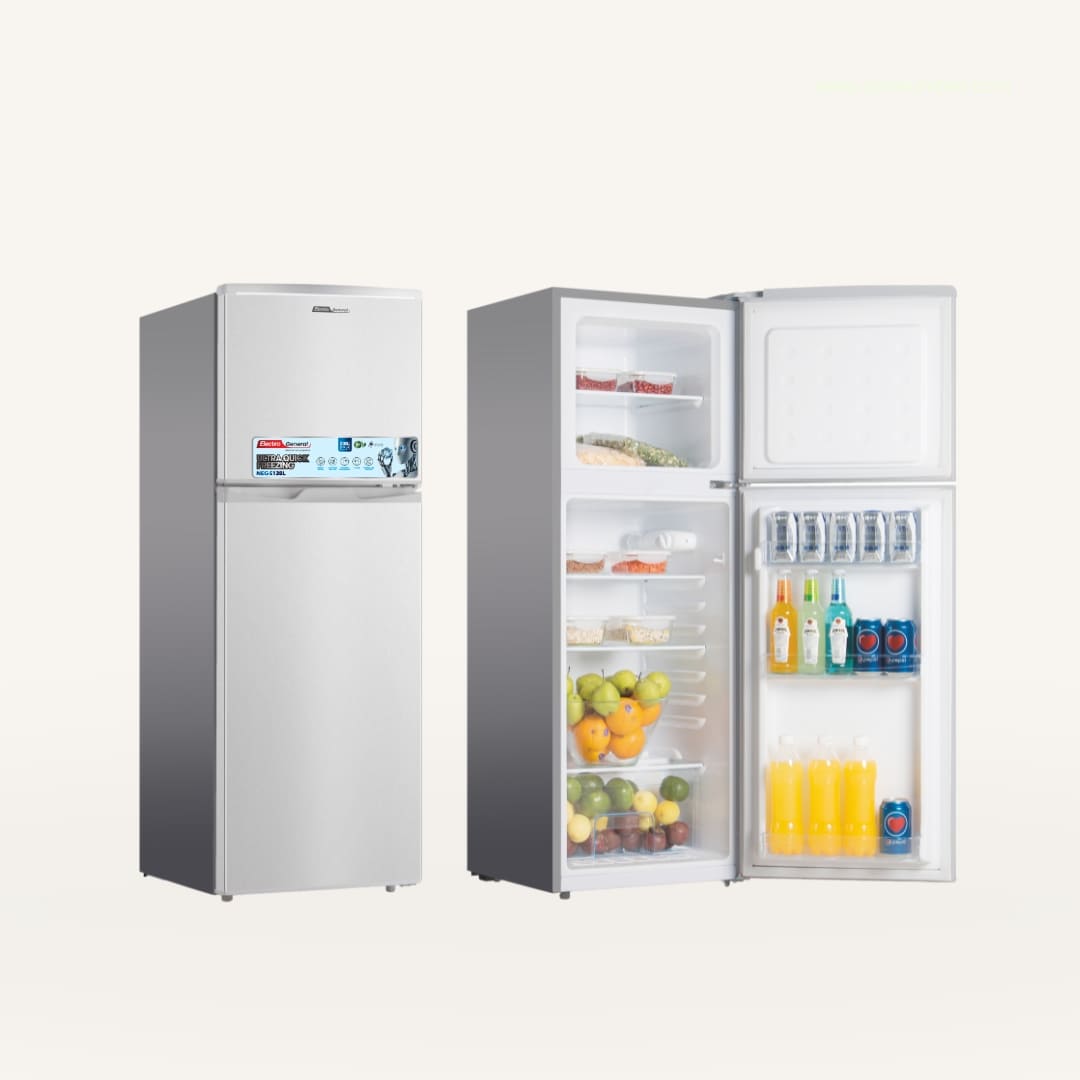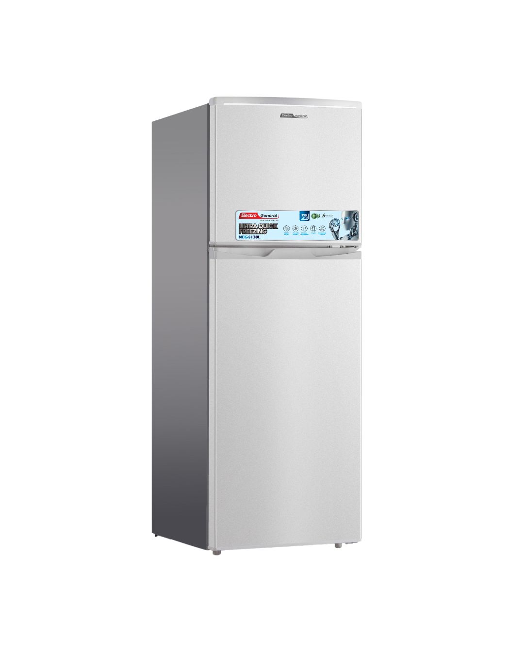 Electro General Double Door Refrigerator NEG-S138L, 138L Gross Capacity, 95L Fresh Food Compartment, 43L Freezer Compartment, Manual Temperature Adjustment, Door Lock & Key, Silver