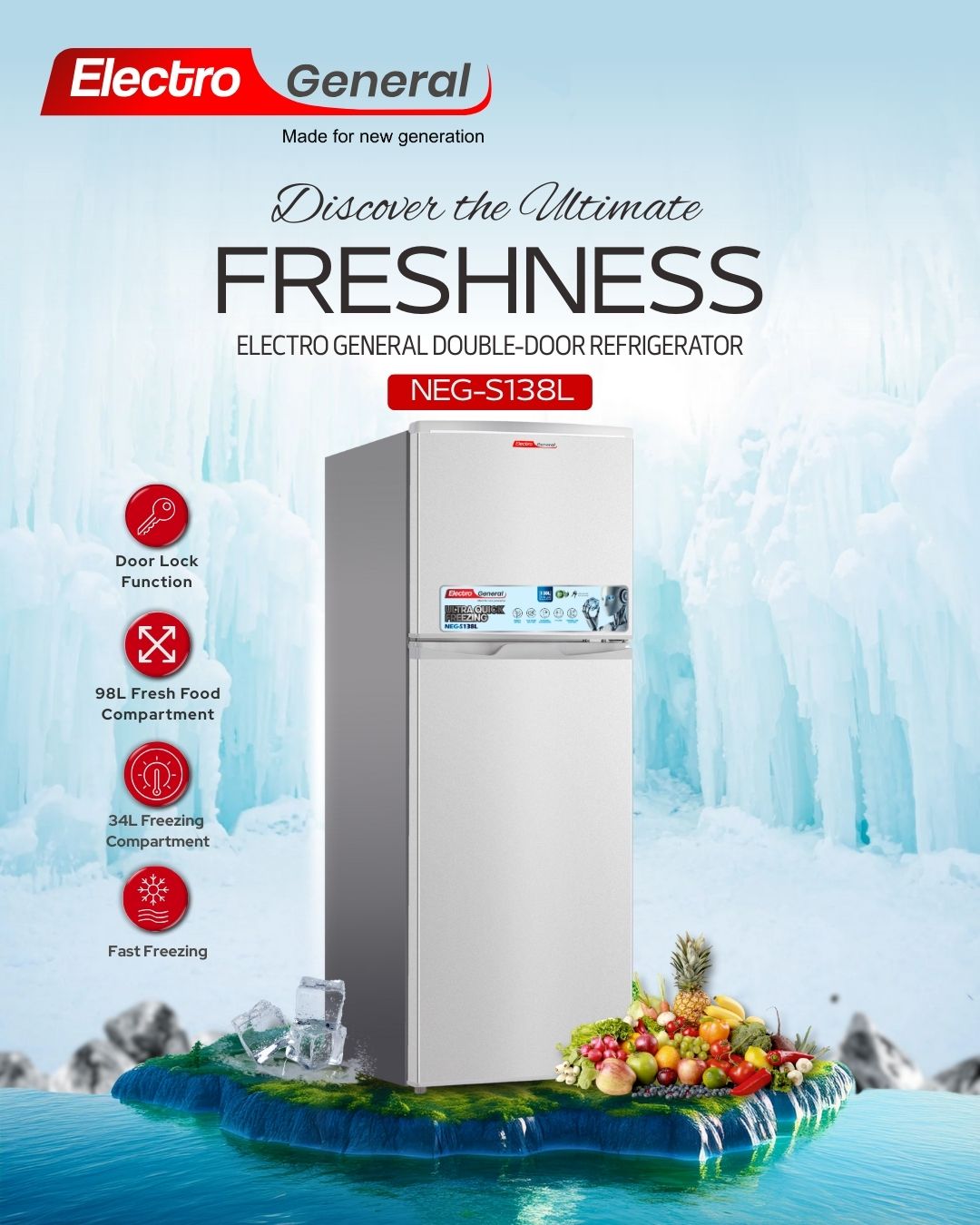 Electro General 138L Double Door Refrigerator NEG-S138L