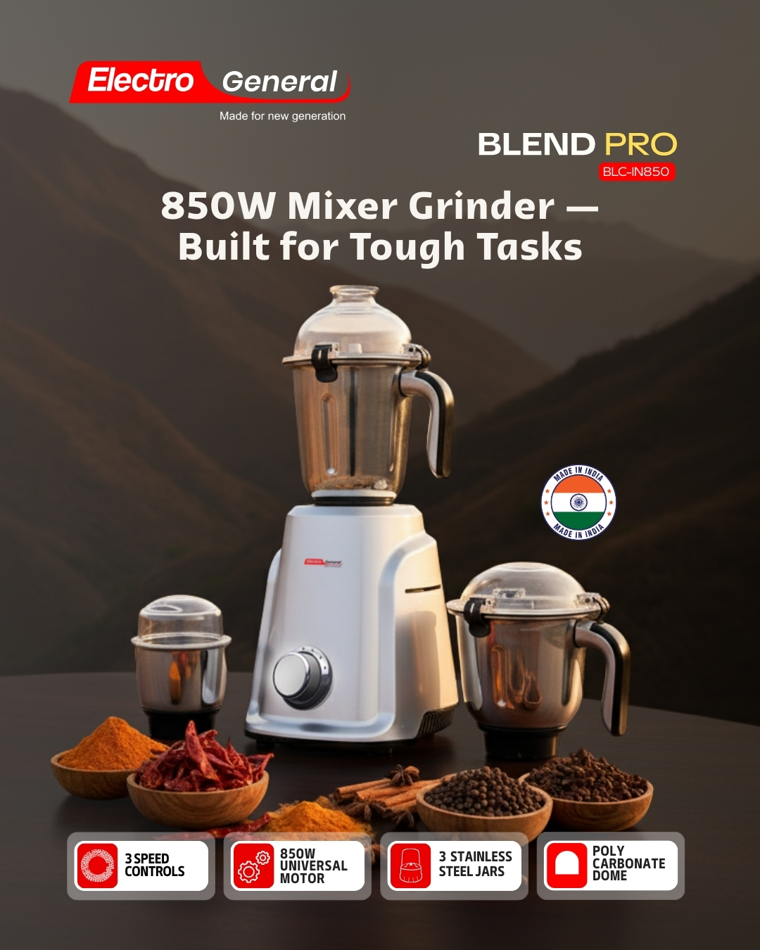 Motor Unit, Stainless Steel Dry Jar, Stainless Steel Wet Jar, Stainless Steel Chutney Jar, 3 Lids with Rubber Ring, Dry Grinding Blade, Wet Grinding Blade, Chutney Blade, Spatula, Instruction Manual & Warranty Card