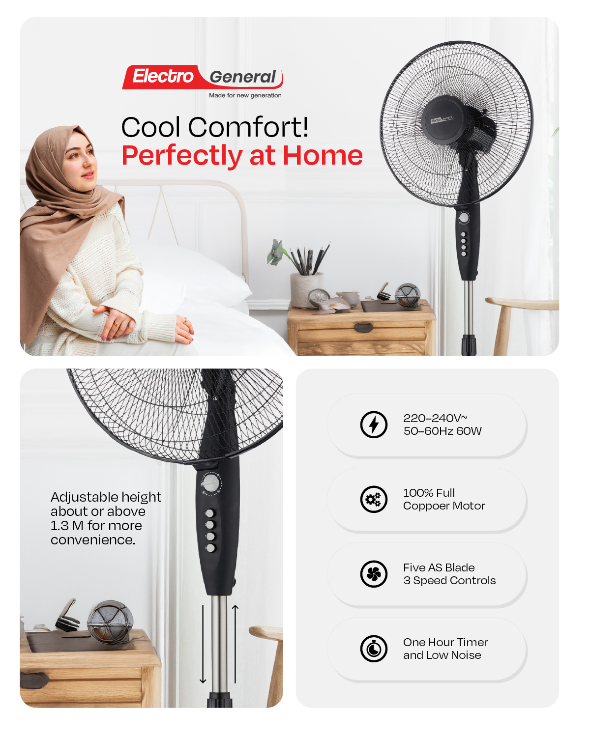 3-SPEED CONTROL & 1-HOUR TIMER