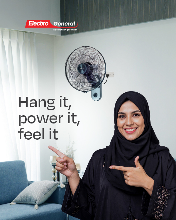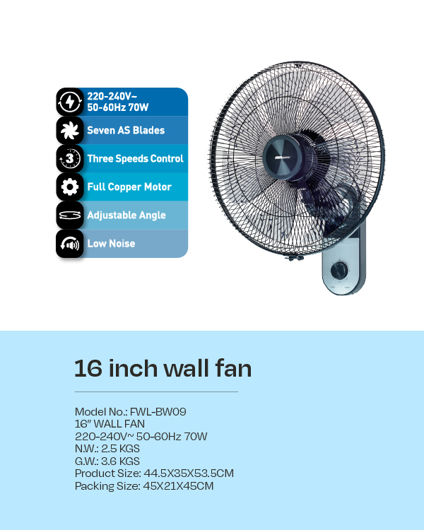 Electro General 16″ Wall Fan FWL-BW09, 70W, Full Copper Motor, 3-Speed Control, 7 AS Blades, Adjustable Angle, Low Noise
